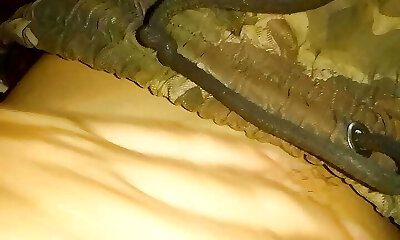 A soldier in the army jerk and spunk