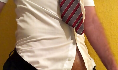 Wanking my uncut ginger cock in college uniform, cumming & eating my heavy load
